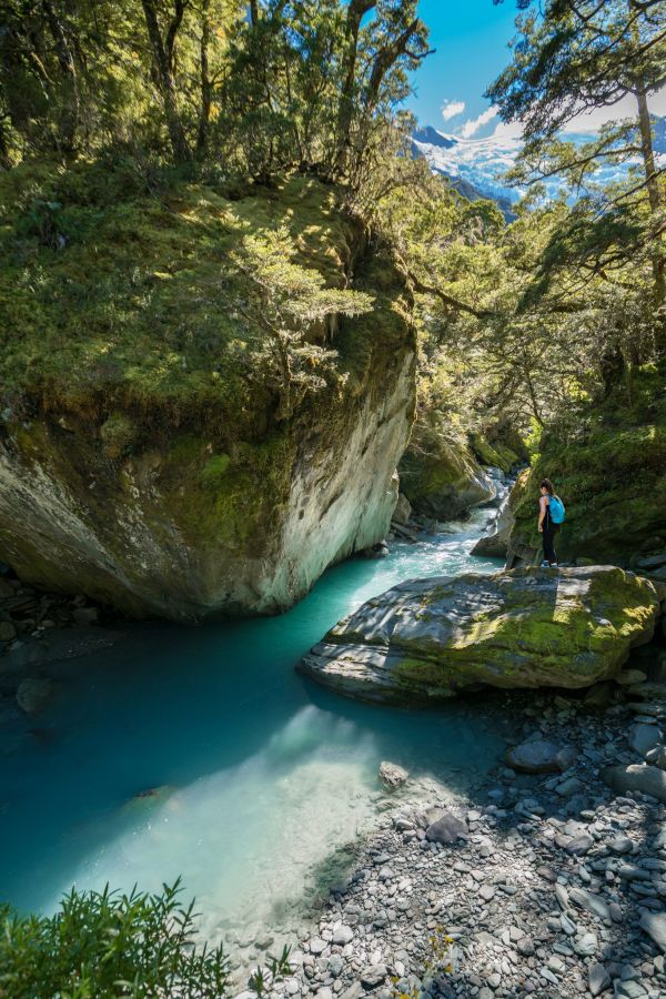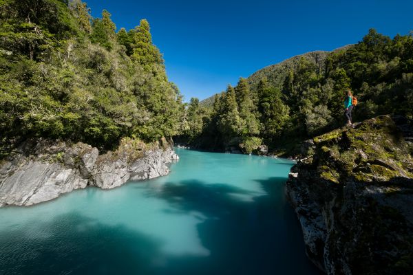 Head to the West Coast via Haast Pass, stop at all the beautiful waterfalls along the way, Blue Pools are the main tourist hotspot as they are so easy to access. However, there are many hidden gems along Haast Pass. If you’re brave enough you can jump in from the bridge or top right of the image below, I can tell you personally; it’s cold. Camp at Lake Paringa DOC Site.